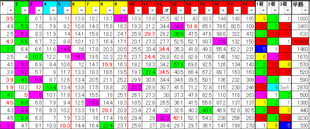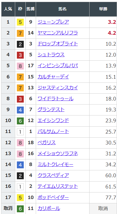 1頭取消が出たため17頭立てになってしまい、上記のデータは使えない。