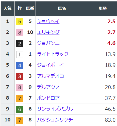 単勝オッズは以下のとおり。