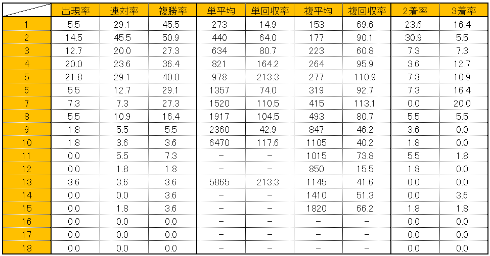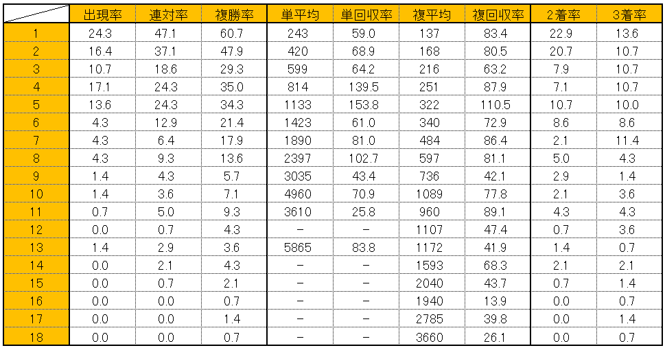 なお18頭立ての参考データは以下のページに記載している。