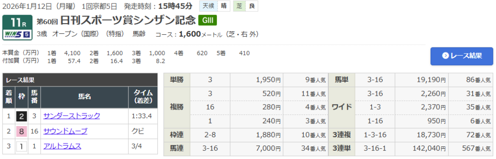 2026年1月12日に京都競馬場で行われるシンザン記念ついてのデータを分析していく。