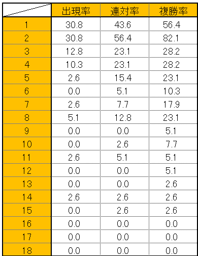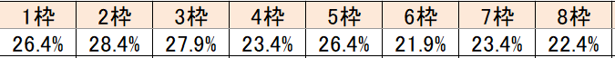 6枠から外は連対率が下がっており、内枠が有利という結果が出ている。