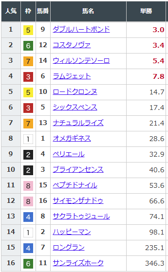 単勝オッズは以下のとおり。
