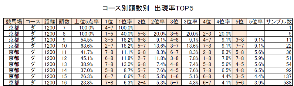 このようなデータを、全組み合わせ・全出走頭数別に掲載している。